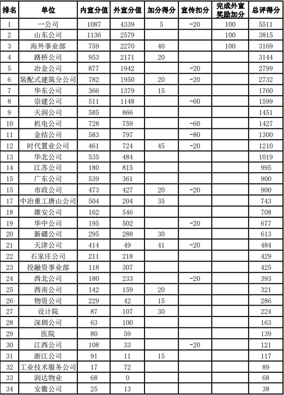 集團(tuán)公司2021年宣傳報(bào)道工作考核結(jié)果